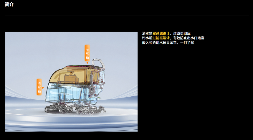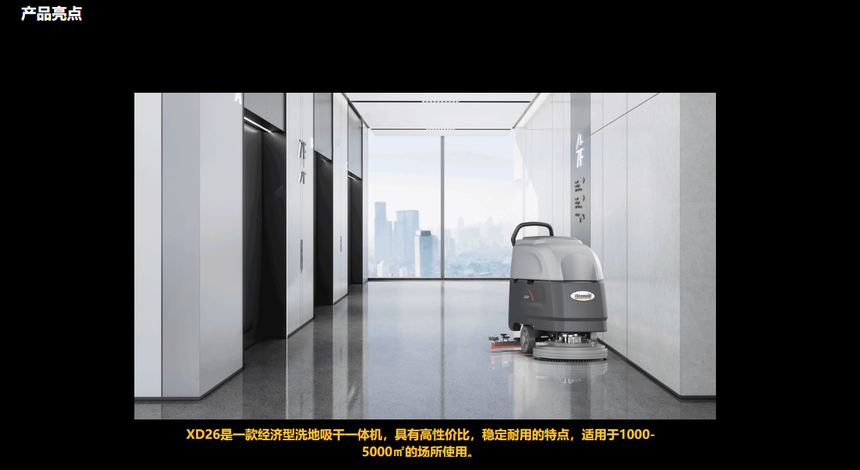 我们的产品主要包括洗地机、扫地机、冲洗车、尘推车、扶梯清洗机、单擦机、吸尘吸水机、多功能保洁车、地面吸干机。