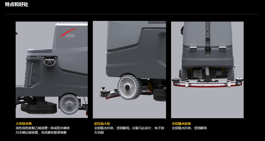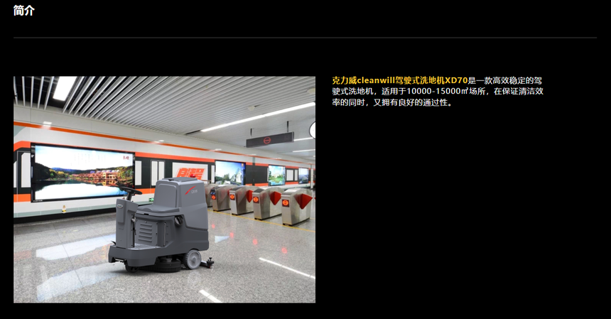 我们的产品主要包括洗地机、扫地机、冲洗车、尘推车、扶梯清洗机、单擦机、吸尘吸水机、多功能保洁车、地面吸干机。